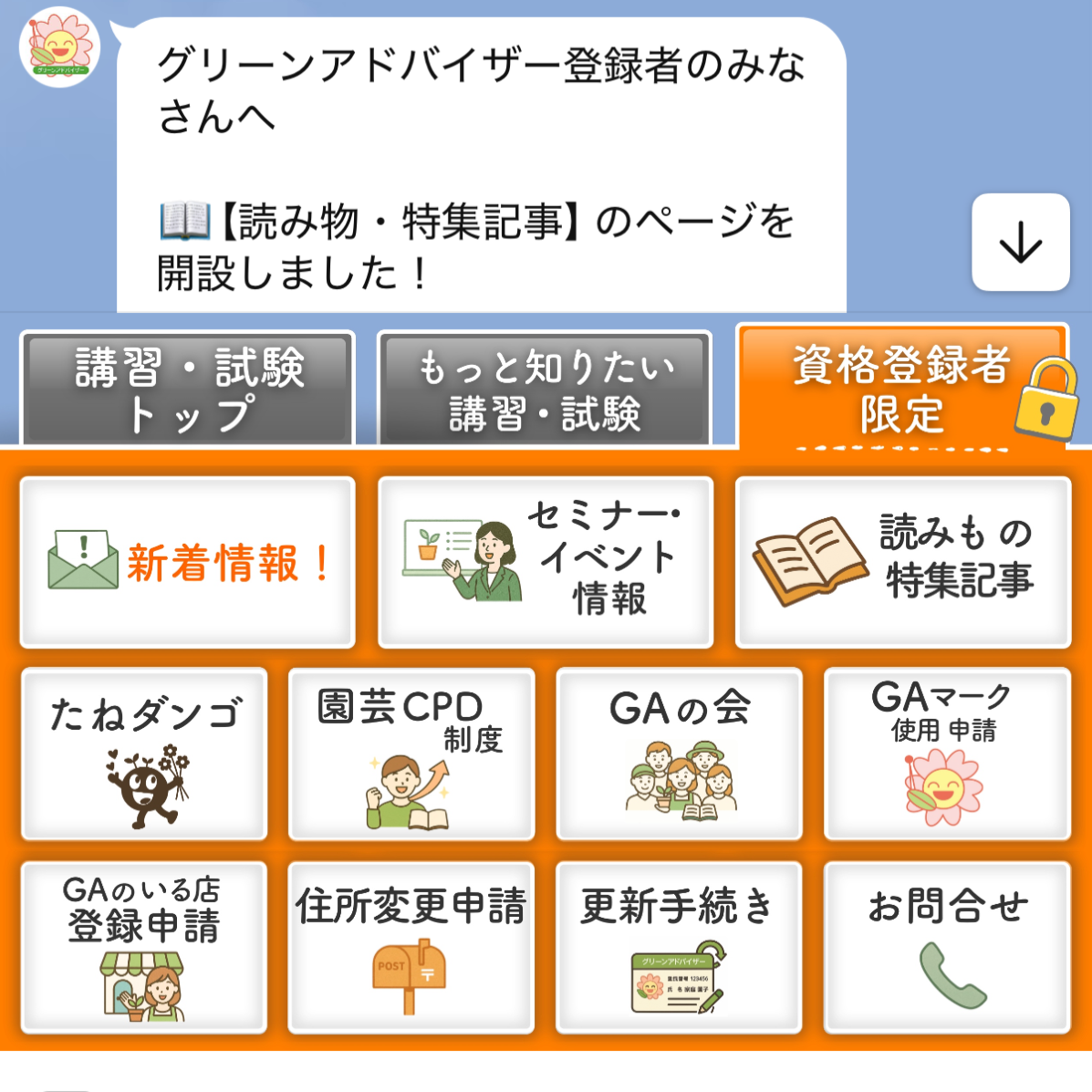 試験合格後、GA公式LINEにアクセスしてGA登録番号を入力すると専用コンテンツにアクセスできます。